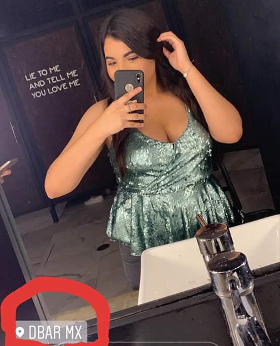 De fiesta y vestida de noche en conocido antro.