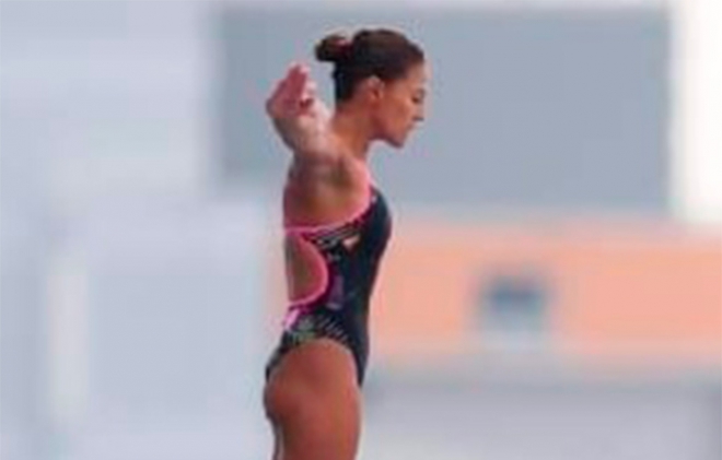 Jiménez, medallista de plata en Budapest 2017, vencedora en la Copa Mundial 2017 y tercera en la Copa Mundial de este año, es líder provisional entre las 13 participantes al realizar dos inmersiones consistentes; en la segunda combinación, una 306C (reversa 3 saltos mortales, tuck), recibió calificaciones entre 7.0 y 8.5 de los jueces.