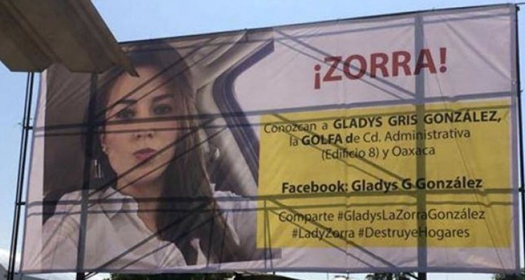 En el anuncio se puede ver la fotografía y datos de Gladys Gris González acompañada de la leyenda “conozcan a Gladys la golfa” y los hashtag “#DestruyeHogares”, “#LadyZorra” y “#GladysLaZorraGonzález”.