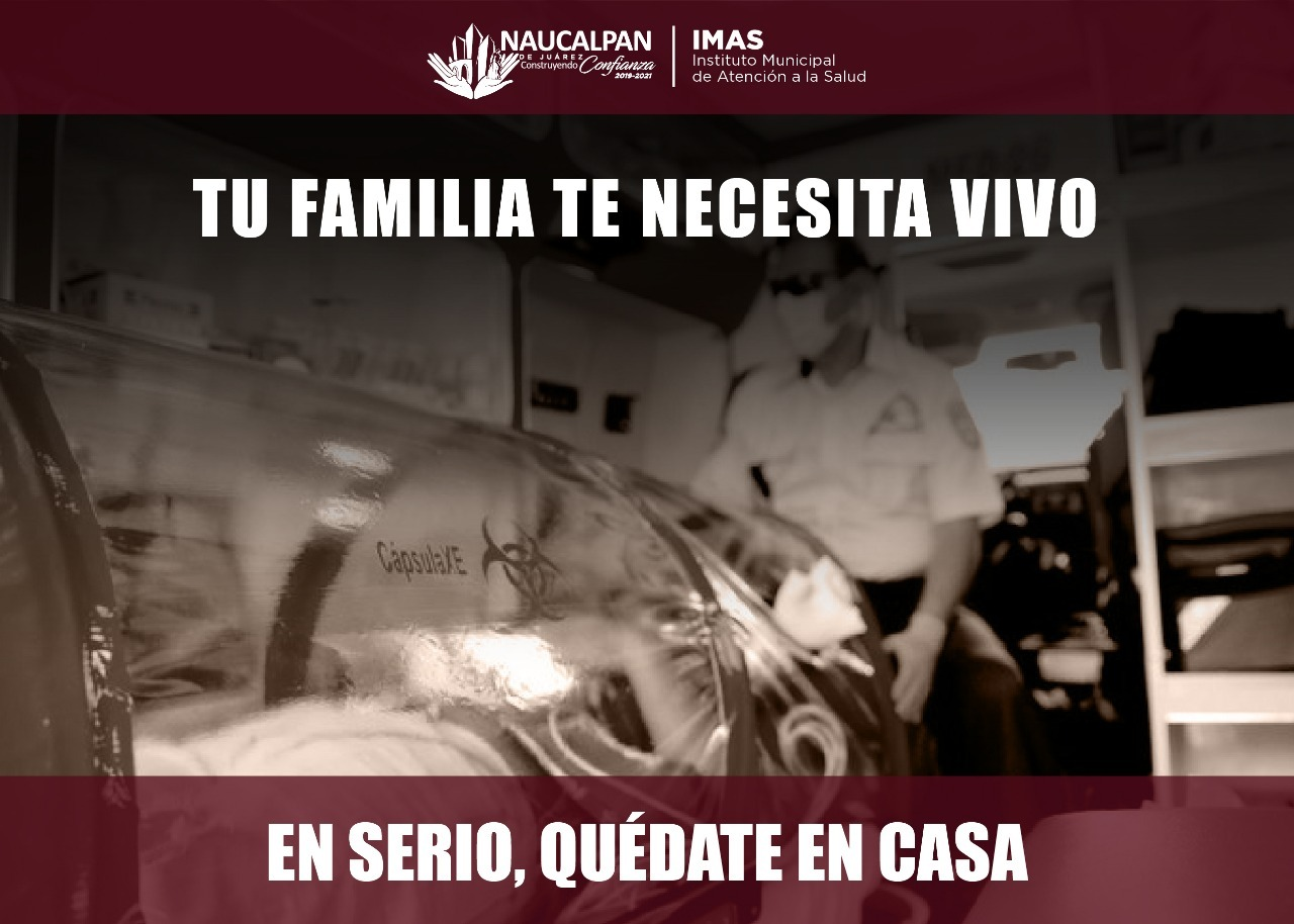 El Gobierno de Naucalpan lanzó este viernes una campaña de concientización para llamar a la población a quedarse en casa durante la Fase de 3 de la emergencia sanitaria por COVID-19. Con mensajes sobre el riesgo a la salud y las implicaciones que tiene en el entorno familiar contagiarse de coronavirus, el Municipio insta a los habitantes a permanecer en sus hogares. Reforzar esta medida de mitigación es necesaria pues, a decir de las autoridades sanitarias federales y estatales, el Valle de México está próximo a alcanzar el punto más alto de contagios; el resguardo en los hogares evitará un rebrote.
