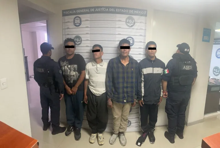 La oportuna atención a una solicitud de apoyo permitió que elementos de la Secretaría de Seguridad del Estado de México (SSEM), detuvieran a cuatro personas probables implicadas en los delitos de portación de armas prohibidas y contra la salud; en la acción, aseguraron posible droga y dos réplicas de pistola.