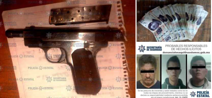 A petición de parte, las tres personas, el vehículo y el arma de fuego fueron trasladados ante el agente del Ministerio Público, quien determinará su situación jurídica por los delitos de robo con violencia y portación ilegal de arma de fuego.