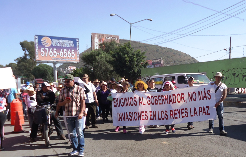 Para denunciar dichas anomalías al menos un centenar de integrantes del Comité Ciudadano de Defensa de los Bienes Municipales realizaron una marcha sobre la carretera federal México-Texcoco, portando mantas que señalan al edil Rolando Castellanos, a Síndico Municipal, Claudia Fernández García y a la directora de Desarrollo Urbano, Alicia Neyra Ortíz de ser los promotores de la invasión y de fraccionar el “megaproyecto”.
