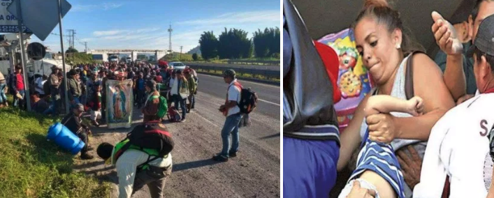 Los adultos, jóvenes, mujeres, niños y bebés, que forman parte de este grupo, fueron acompañados por el delegado regional de la Comisión Estatal de Derechos Humanos (CEDH) Manuel Sánchez Hernández, quien ordenó la compra de tamales y atoles para desayunar debido a la negativa de los grupos religiosos y autoridades locales de proporcionar agua y alimentos.