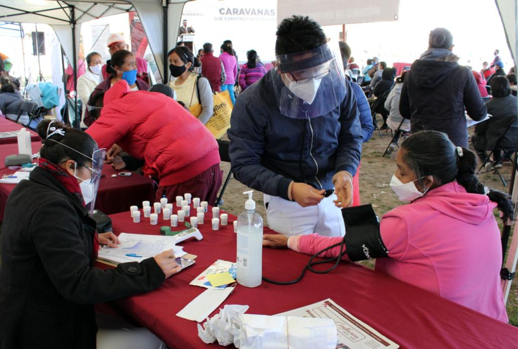 Por primera ocasión, las Caravanas que Construyen Confianza otorgaron servicios en Santiago Tepatlaxco, uno de los cinco pueblos originarios que hay en Naucalpan, donde se brindaron jornadas de salud y asistenciales, con reparto de despensas y cobijas.