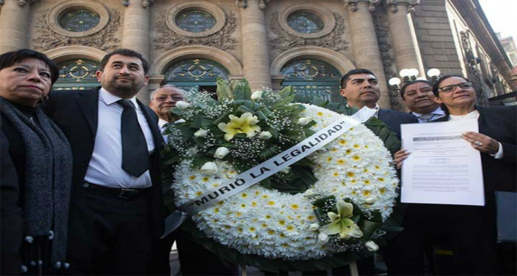 Cravioto y sus compañeros de bancada entraron al pleno de la Asamblea con una corona fúnebre que dice “Legalidad”, en símbolo que está se ha perdido en la Asamblea.