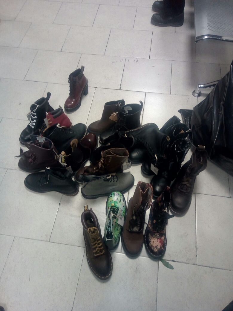 Los uniformados encontraron los barrotes rotos de la cortina del negocio y en el interior a un sujeto con dos bolsas llenas de zapatos.