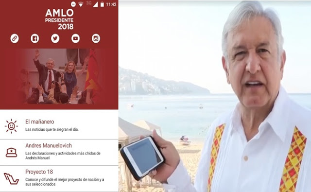 A través de su cuenta de Twitter, Tatiana Clouthier, coordinadora de la campaña presidencial de la coalición Juntos haremos historia, subió un brevísimo video en el que Andrés Manuel López Obrador invita a sus seguidores y simpatizantes a bajar la aplicación “AMLO2018”, que contiene noticias y actividades de su campaña electoral.