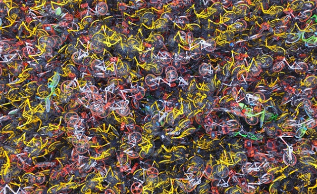 Miles y miles de bicicletas apiladas, una encima de otra. Una imagen chocante, casi dantesca, que se ha convertido en habitual en China. Son los cementerios de bicicletas, fruto de una moda que llevó a muchas empresas chinas a entrar en el mundo del alquiler de bicis, incluso a que se promoviesen programas gubernamentales contra la contaminación y por la movilidad sostenible. Hoy, la oferta es mucho mayor que la demanda, y el resultado es el que se puede ver en las imágenes.