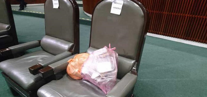 Luego de una larga sesión en el pleno Legislativo de San Lázaro, a los diputados federales se les olvidó recoger su basura, misma que quedó tirada en el piso y curules del salón.