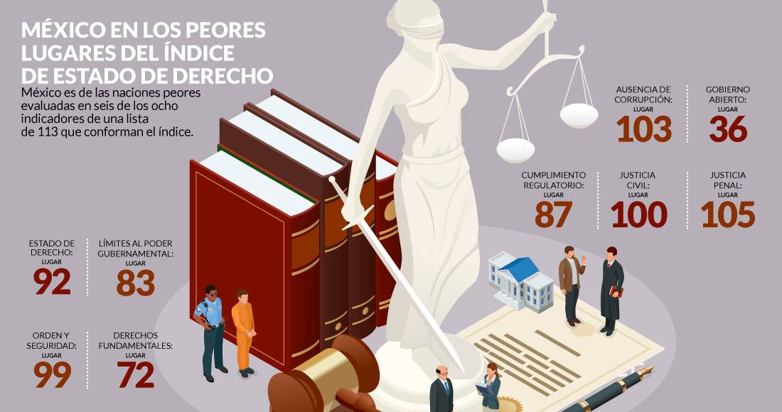 Aún así, el Índice de Estado de Derecho en México alerta que el país está reprobado a nivel nacional, con un promedio de 0.39 puntos, en una escala que oscila entre 0 y 1, donde 1 indica la máxima adhesión al Estado de Derecho; y su peor calificación se da en el factor “ausencia de corrupción” que considera el uso del poder público para obtener un beneficio privado, en los poderes ejecutivo, legislativo, y judicial locales, así como en el sistema de seguridad y procuración de justicia. Además, destaca, que todos los estados están muy lejos de la puntuación perfecta.
