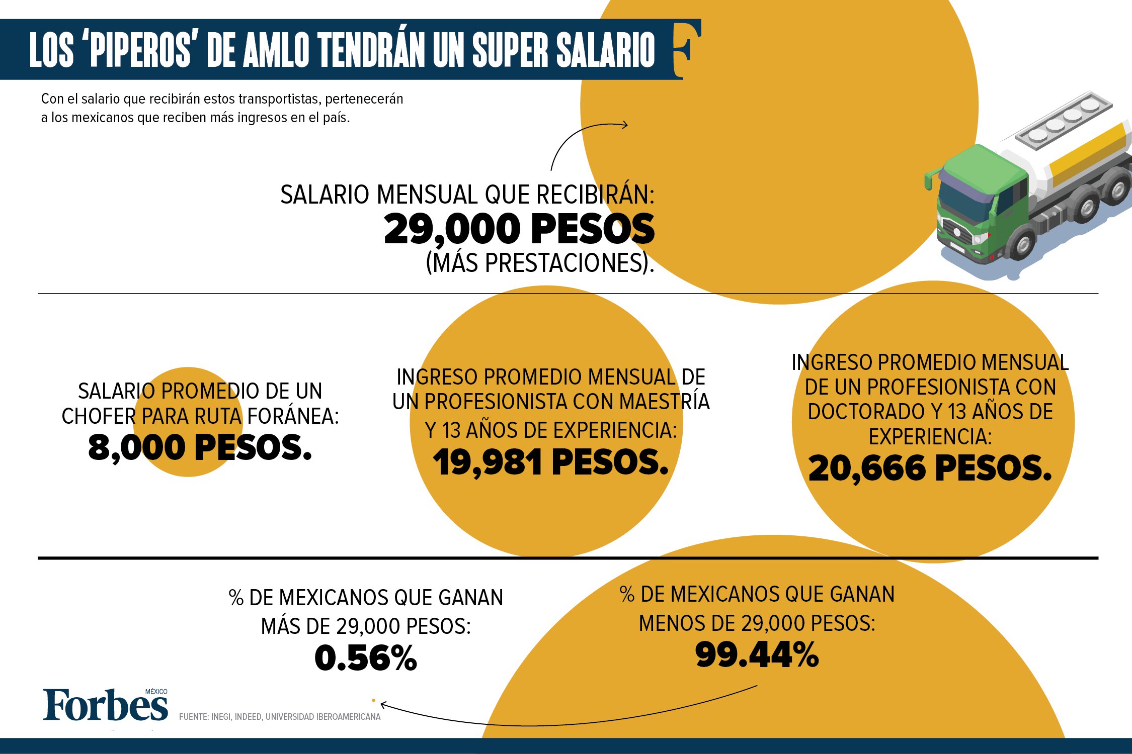 Los altos salarios que recibirán los camioneros que transporten pipas de gasolina son más que atractivos, pues con ese nivel se ubicarán en el 0.56% de los mexicanos con mejores ingresos en todo el país.