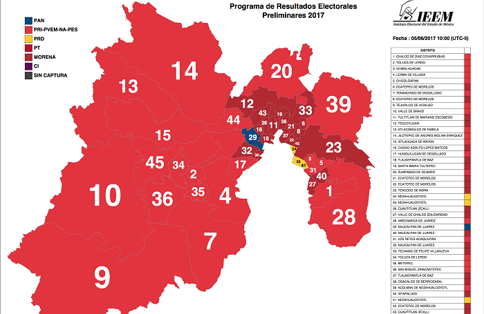Un comparativo estadístico de los resultados electorales difundidos por el Instituto Electoral del Estado de México (IEEM) y estadísticas del Consejo Nacional para la Evaluación de la Política del Desarrollo Social dejan ver de manera gráfica que existe una correlación entre la condición de pobreza de la población y su preferencia partidista.