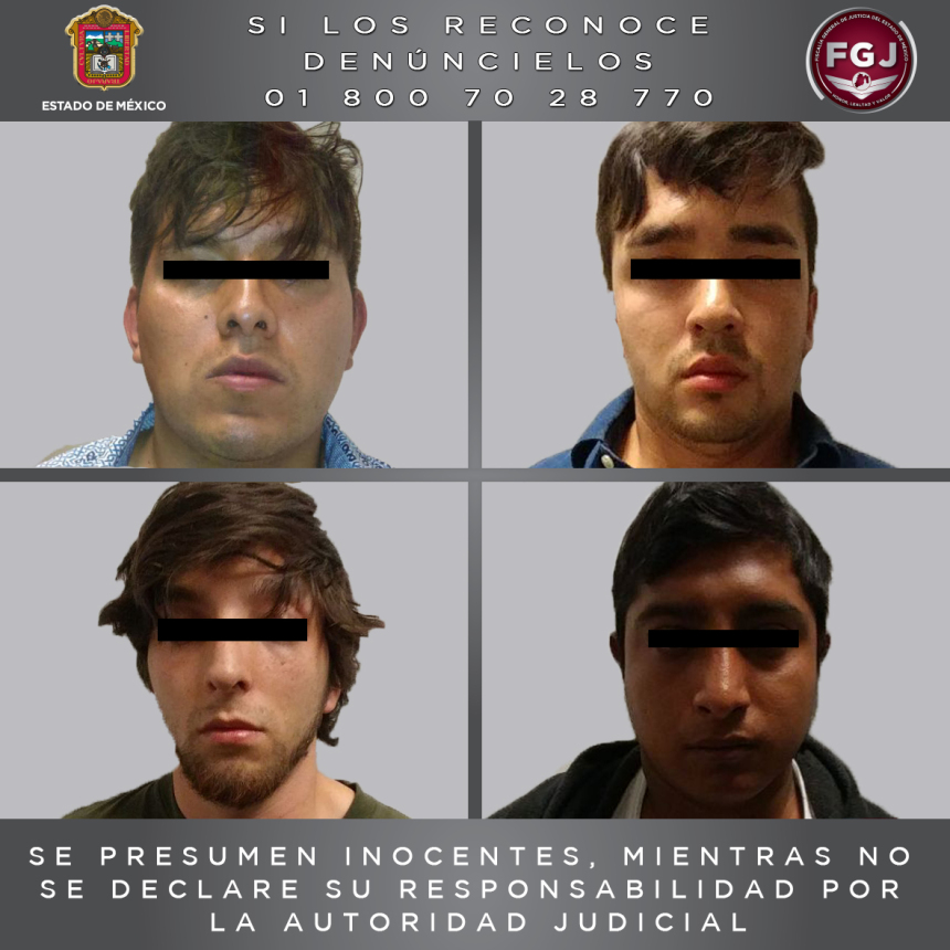 Los detenidos fueron identificados como Iván “N”, José Arturo “N”, Alejandro “N”, y Antonio “N”, quienes son investigados por el homicidio de cuatro personas, hechos ocurridos en los municipios de Atizapán de Zaragoza y Naucalpan, en el mes de septiembre pasado.