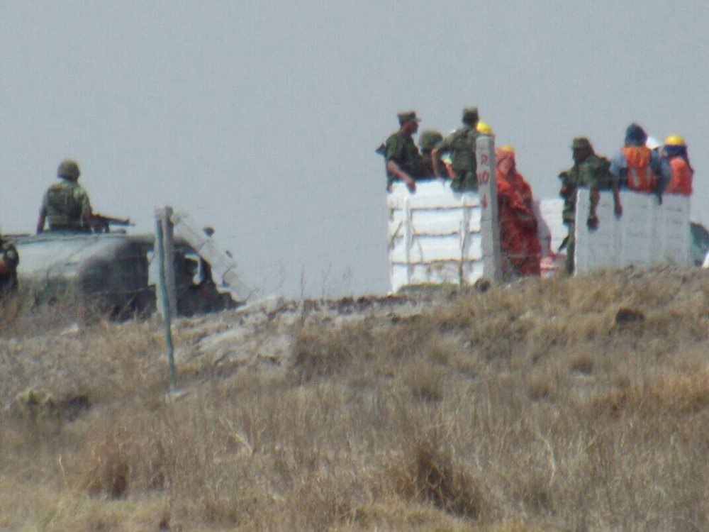Los militares, a bordo de una tanqueta, custodiaban a trabajadores y topógrafos, que laboran en las obras de construcción del Nuevo Aeropuerto Internacional de México (NAIM), pero se pasaron a los ejidos sin permiso.