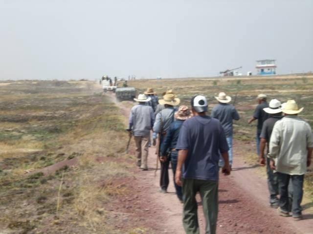 Aún así, los ejidatarios obligaron a los efectivos y trabajadores a subir a las tres camionetas en las que se trasladaban y emprender la retirada hacia la zona federal.