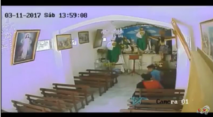 Santa María Atarasquillo, Edomex.- Se ha difundido un video donde se aprecia cómo madre e hijo roban las limosnas de una iglesia.