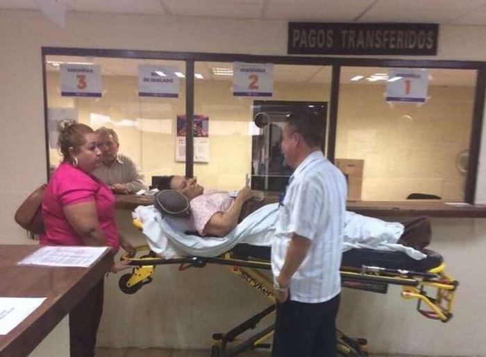 El autor de la publicación aseguró que la mujer llegó en camilla y con el apoyo de enfermeros de una ambulancia del ISSSTE, aparentemente lo hizo porque los directivos del magisterio no creyeron que estuviera enferma e incapacitada.