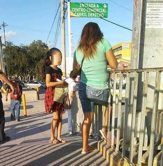 En una de las imágenes se observa que la menor trae un cartel que dice: “vendo #chicles porque no valoro lo que tengo”.