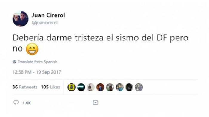 El cantante de folk rock Juan Cirerol se burló en las redes sociales del terremoto de 7.1 grados en la escala de Ritcher que sacudió a México el martes, cuyo saldo de momento ha sido más de 200 muertos en estados como Morelos, Ciudad de México y Puebla.