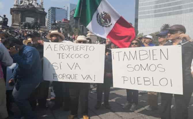Desde muy tempranas horas, personas a favor de la construcción del nuevo aeropuerto en Texcoco comenzaron la organización y así avanzar en su trayecto; con pancartas y lonas se manifestaron.