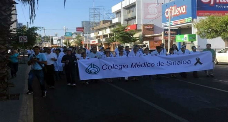 on la exigencia para esclarecer el asesinato de Miguel Ángel Camacho, director del ISSSTE en Mazatlán y por el incremento de la violencia en contra de profesionales de la salud en Sinaloa, el Colegio de Médicos Cirujanos se manifestó en calles de dicho ciudad.