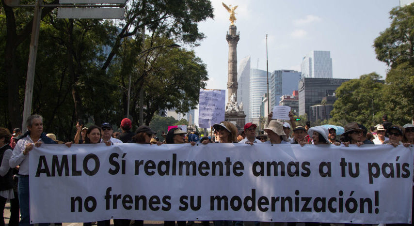 Este domingo se realizó una marcha del Ángel de la Independencia al Zócalo capitalino con la demanda de que no se cancele el proyecto del Nuevo Aeropuerto Internacional de México en Texcoco. Los asistentes descalificaron la consulta en la que la mayoría votó por ampliar la base aérea de Santa Lucía. (Fotos: Ilse Huesca/ Cuartoscuro)