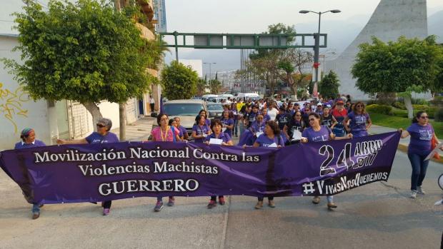 Grupos de mujeres marcharon en Chilpancingo como parte del Movimiento Nacional contra la Violencia Machista.