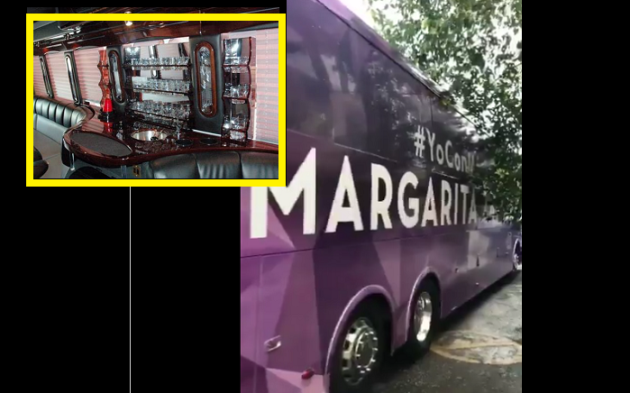 Trascendió que el camión cuenta con un mini bar, el cual se dice, estará al servicio de su esposo, famoso por su afición a las bebidas alcohólicas.