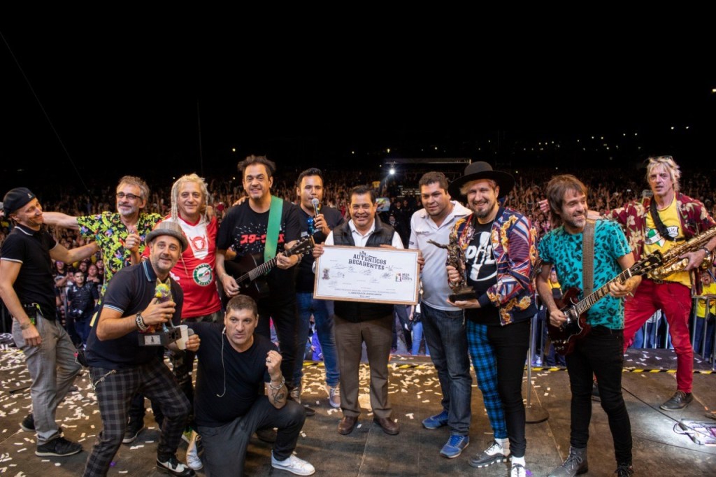 Así después de cantar la “Guitarra”, el presidente municipal Juan Hugo de la Rosa García, entregó una estatuilla del Gran Tlatonai Nezahualcóyotl a los Auténticos Decadentes por su destacada participación en el Festival del 56 aniversario, y agradeció a esta Banda argentina el haber aceptado la invitación para participar en esta celebración.