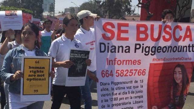 Padres de familia, maestros y más de 4 mil alumnos de la Preparatoria Federal Lázaro Cárdenas, se organizaron para salir a la calle a exigir paz en la ciudad de Tijuana. Al llegar a la Procuraduría General de la Justicia del Estado, pidieron a las autoridades que aceleren el proceso para encontrar a Diana Piggeonountt.