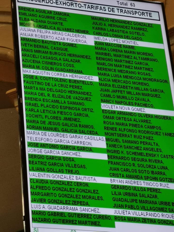 En sesión del Congreso del Estado de México,la mayoría de los Diputados Locales votaron por enviar un exhorto al Secretario de Movilidad en la entidad, Raymundo Martínez Carbajal, para solicitarle no autorizar el aumento del pasaje del transporte público.