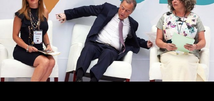 Pero su caída no es meramente numérica, ahora también es una caída física. En un evento que se llevó a cabo este martes en el Palacio de Minería de la Ciudad de México, el exsecretario de Hacienda estaba esperando su turno para participar mientras se colocaba en su asiento.