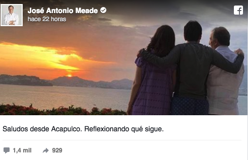Tras consumarse la histórica derrota en la elección del 1 de julio, Meade acudió el jueves pasado a un encuentro con el presidente Enrique Peña Nieto en la residencia oficial de Los Pinos. Pese a rumores de una posible reincorporación al gabinete presidencial, el excandidato no ha confirmado sus planes a futuro.