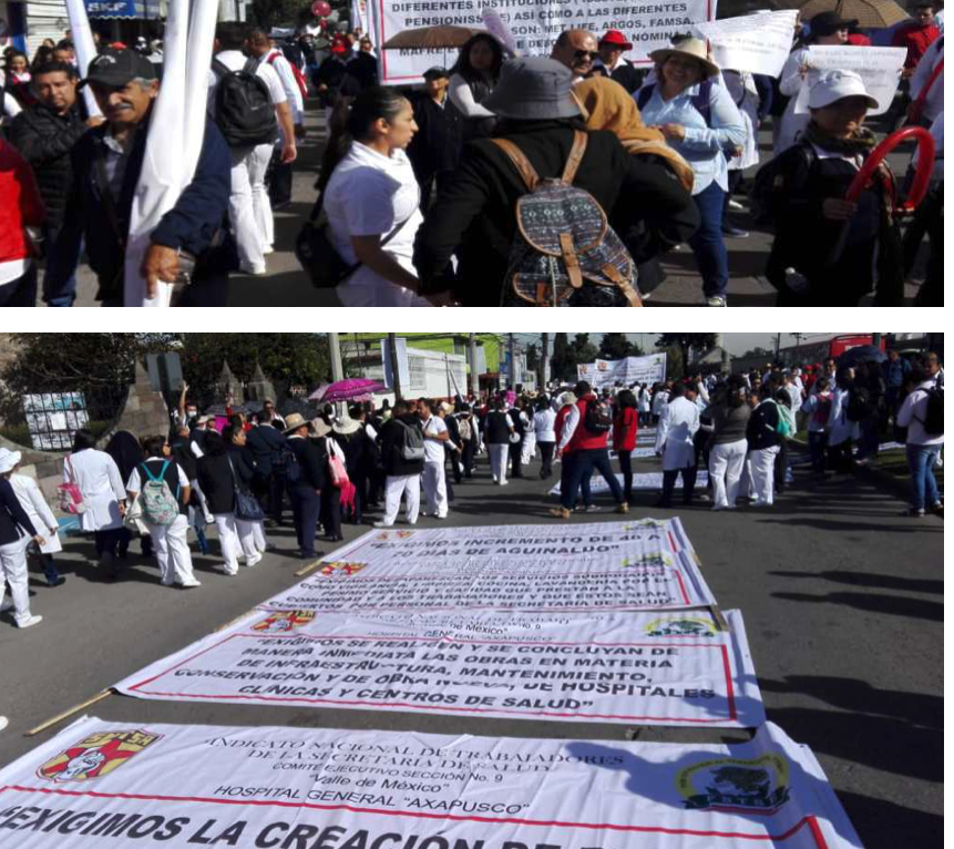 Personal médico, de enfermería y mantenimiento realizan manifestaciones en diferentes puntos del estado de México, en protesta porque en los más de 30 hospitales del Instituto de Salud en el estado de México (ISEM) no hay suministro de medicamentos para atender a miles de pacientes que a diario llegan por alguna emergencia o consulta médica.