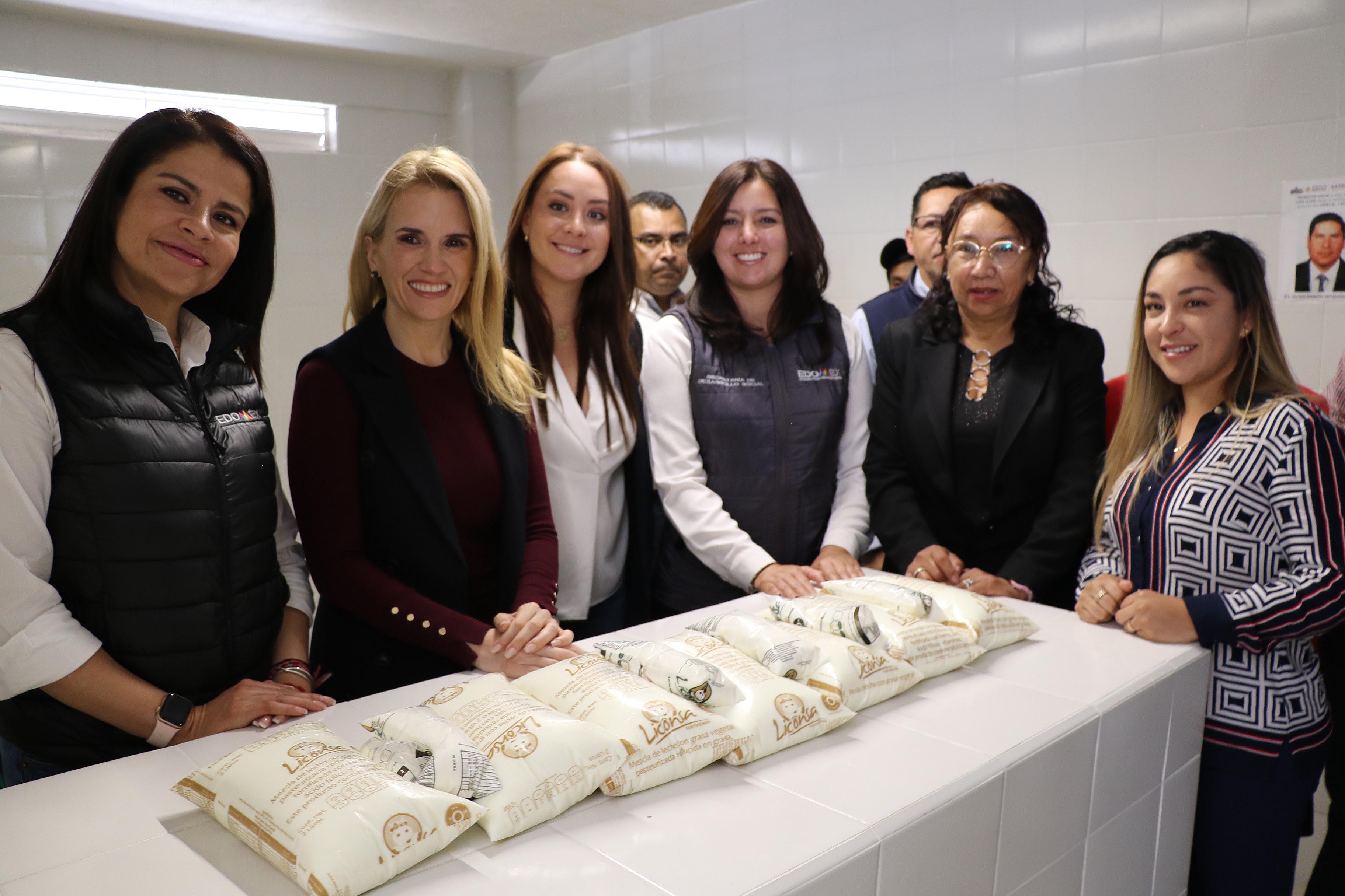 “Este gobierno trabaja entregando resultados”, aseguró Romina Conteras Carrasco, presidenta del Sistema Municipal para el Desarrollo Integral de la Familia, durante la inauguración de dos lecherías en las comunidades de Piedra Grande y San Francisco Ayotuxco.