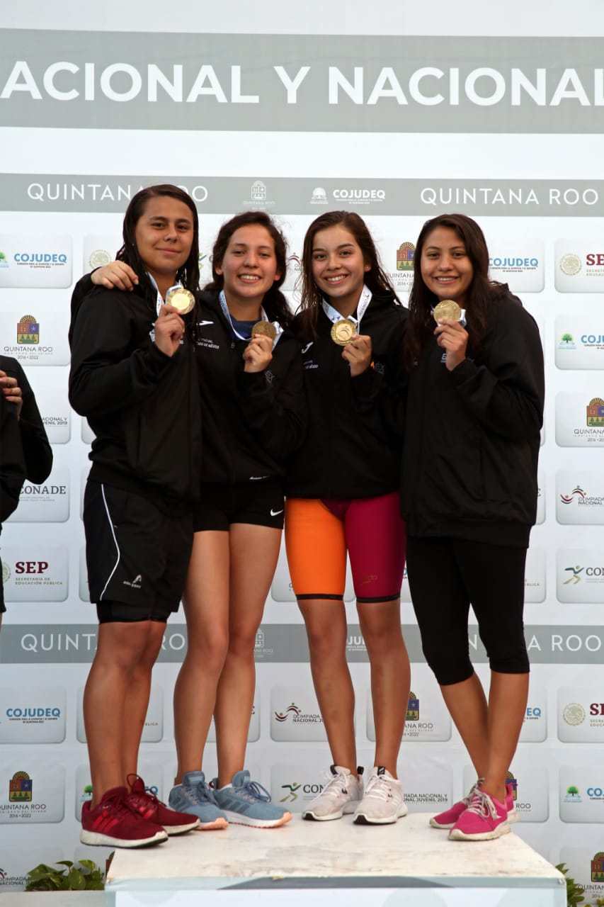 Con la sobresaliente participación de nadadores como Ximena Conde Merlos, María Fernanda Jiménez Peón y Andrés Puente, la delegación del Estado de México acumuló 14 preseas doradas, cinco de plata y seis de bronce, siendo ésta la disciplina que tuvo el incremento más considerable en su rendimiento, en comparación con 2018, cuando no hubo preseas áureas para los mexiquenses.