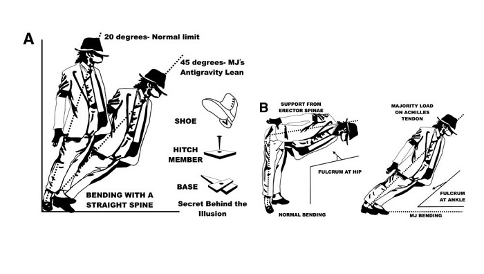 Un poco de todo. Tres neurocirujanos indios que se declaran fans del “Rey del Pop” aseguran que desde el punto de vista de la biomecánica el bailarín más entrenado solo puede inclinarse en un ángulo de 25 a 30 grados respecto a la vertical, porque la columna vertebral no permite más.