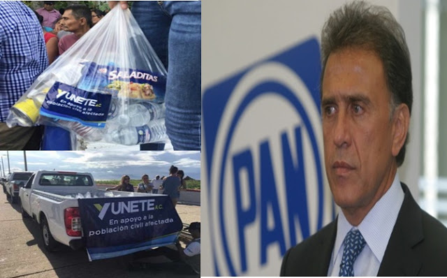 Después del paso del huracán “Katia” en Veracruz, algunos miembros deslindados del Partido Acción Nacional (PAN) se aprovecharon de la necesidad de los damnificados para entregar despensas con propaganda de Miguel Ángel Yunes, con el objetivo de promover su imagen.