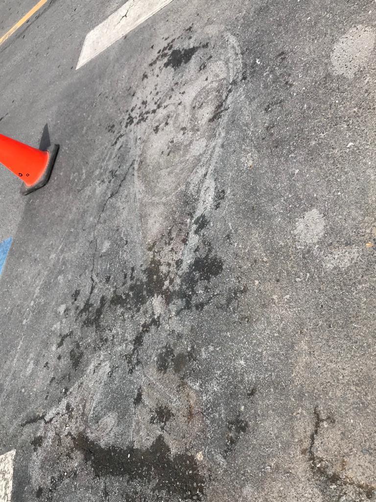 La cual fue hecha con gis, hecho que es lo que causa sorpresa debido a que después de 13 años, la imagen reapareció.