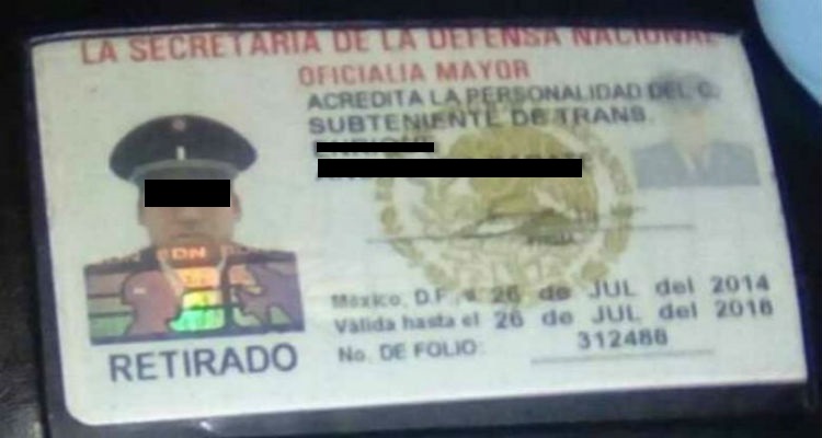 Dicha identificación la expidió la Secretaria de la Defensa Nacional (Sedena), la cual está a nombre de Enrique Anchondo Zarate, subteniente retirado, quien falleció en el lugar.