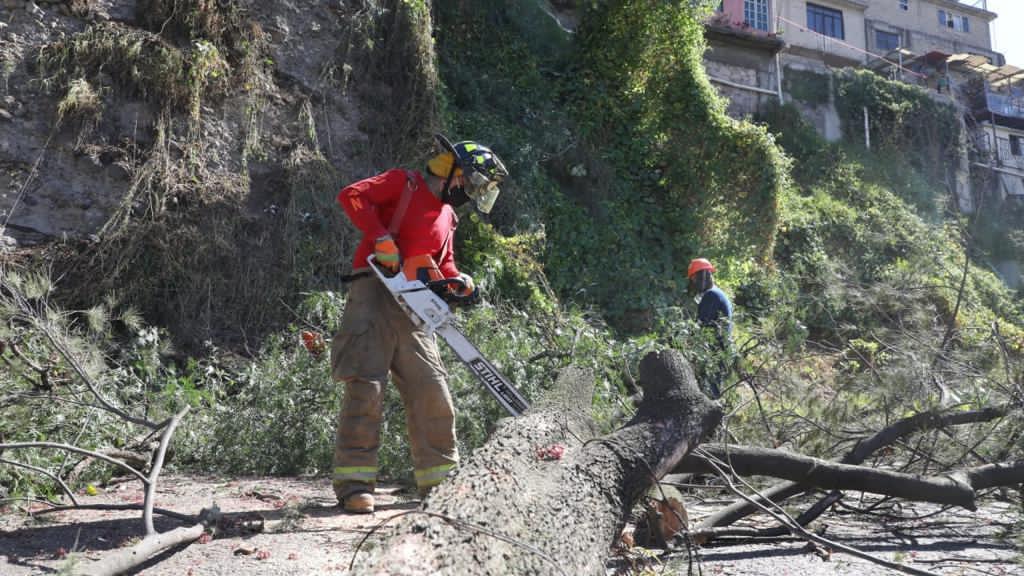 El Gobierno de Naucalpan realizó un operativo preventivo sobre la avenida Camino Nuevo a Huixquilucan, donde, a pie de carretera, 21 árboles presentaban riesgo de caída a causa de lluvias, tormentas y deslaves.