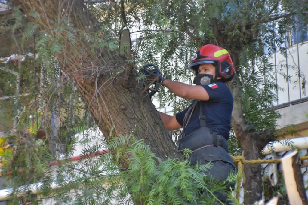 Encabezado por la Coordinación de Protección Civil y Bomberos, seis dependencias municipales se sumaron a los trabajos de derribo, poda y limpieza en los 200 metros lineales intervenidos en el talud.