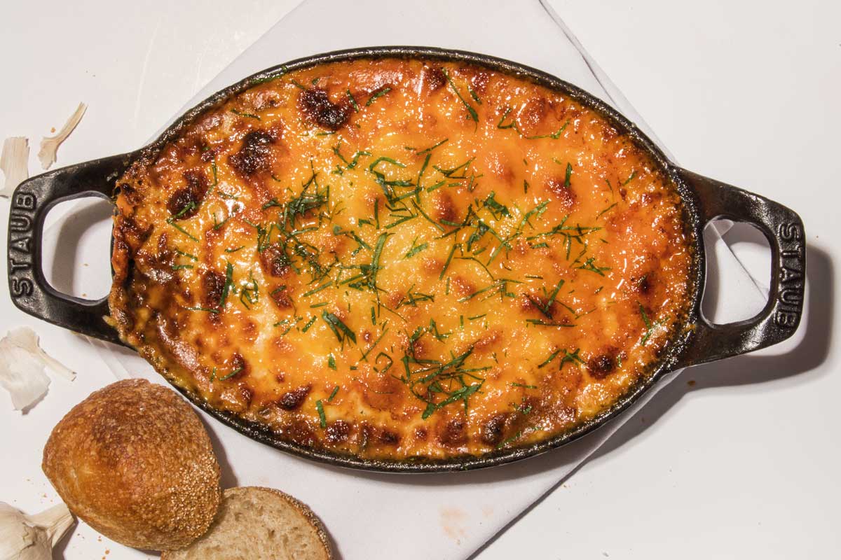 La moussaka que prepara el chef Abel Hernández, en el restaurante Loretta, esconde su umami en el dorado de la carne y la reducción del jitomate que concentran sus sabores bajo un generoso velo de queso parmesano.