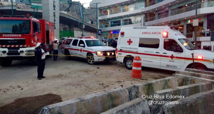 Servicios de emergencia laboran en un derrumbe suscitado en la zona de construcción de un paso a desnivel ubicado en la colonia Bosques de las Palmas, en Huixquilucan.