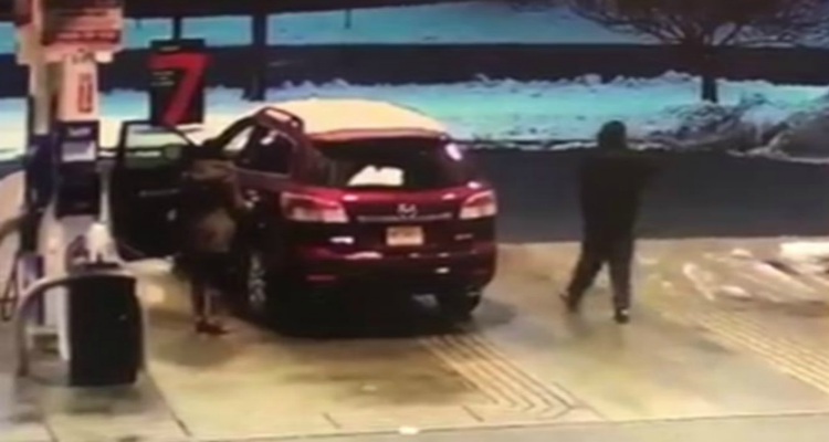 En una estación de gasolina de Massachusetts, una mujer para defenderse del robo de su camioneta roció de gasolina al malhechor.