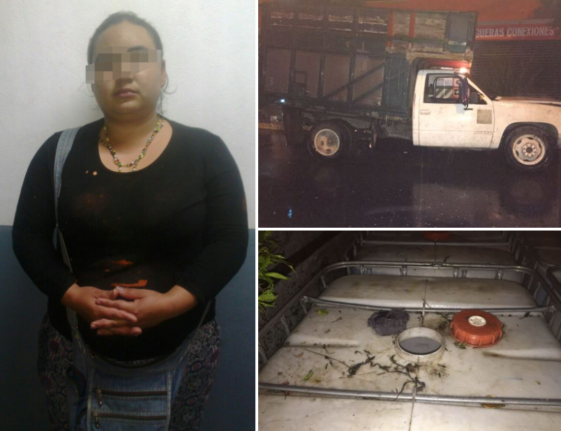 Una mujer fue detenida en el paraje Tlacaluca, cuando “vigilaba” una camioneta con 4 contenedores de mil litros cada una, dos de ellos estaban llenos de diésel.