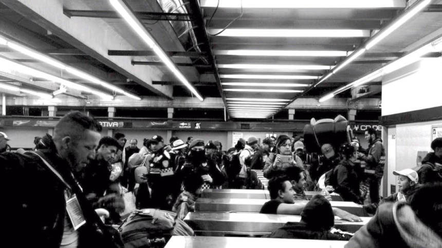 En camino hacia el metro algunas personas migrantes tomaban los desayunos, galletas o dulces que otras les regalaban. Con carriolas, colchonetas, cajas llenas de comida o ropa, bolsas con fruta, peluches, mochilas, animales, padres y madres cargando a su hijas, las personas del éxodo empezaron a subir las escaleras del metro, pasar los torniquetes y subirse a los vagones rumbo a la estación del metro Chabacano para ir de ahí a la terminal Cuatro Caminos.