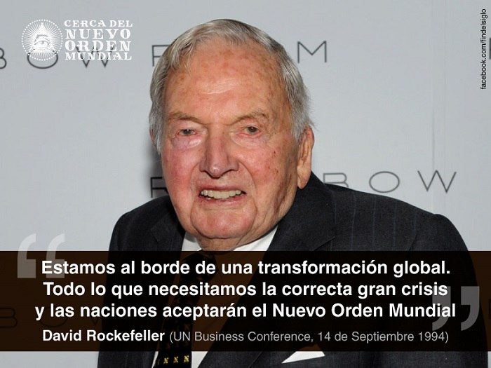 David Rockefeller en una cena con embajadores de la ONU: “Estamos al borde de una transformación global. Todo lo que necesitamos es una gran crisis y las naciones aceptarán el Nuevo Orden Mundial”.