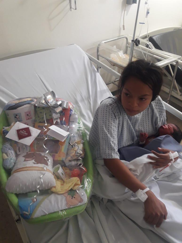 A la familia se le entregó una canasta con artículos para el cuidado del bebé, ropa y tina.